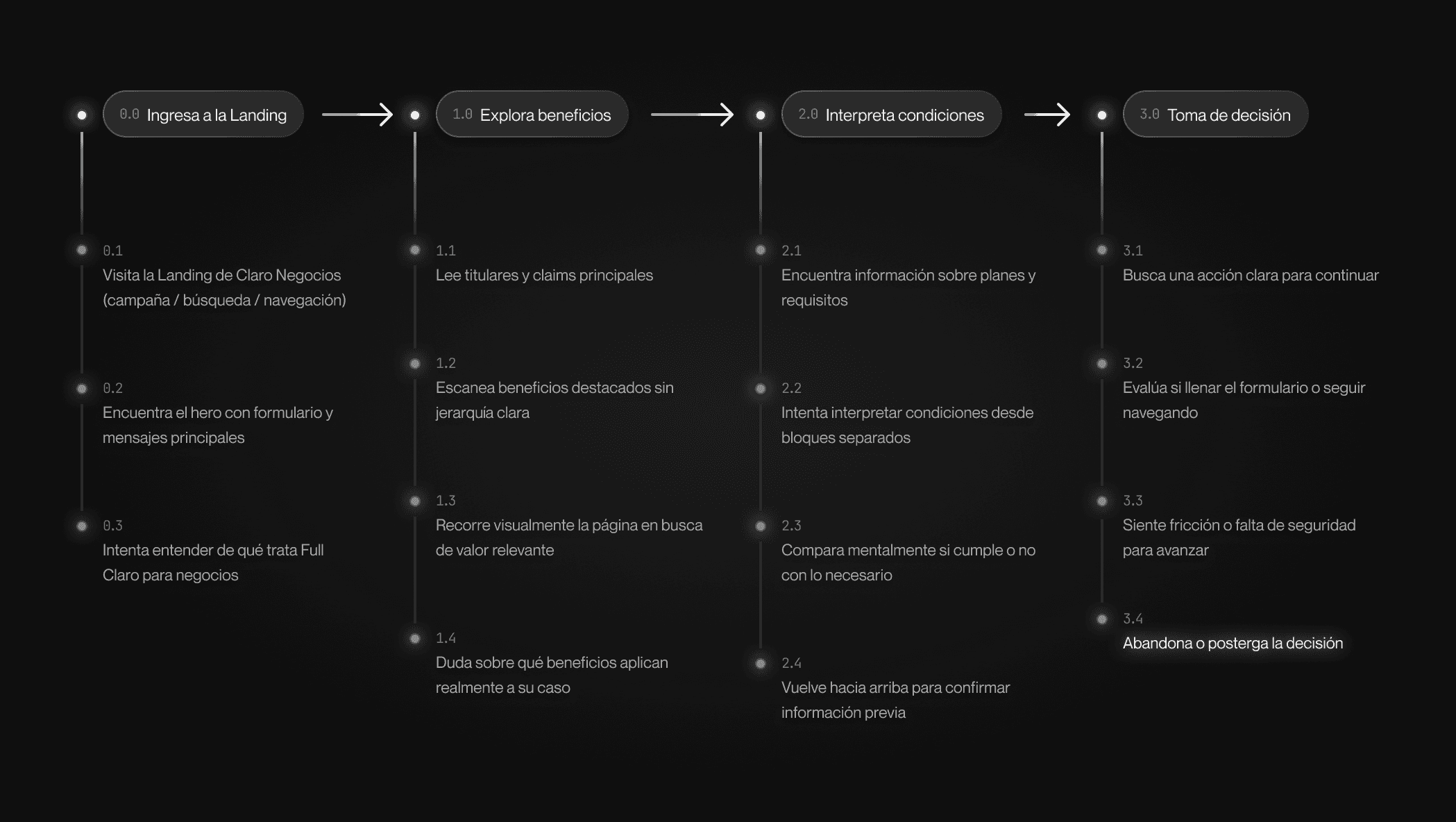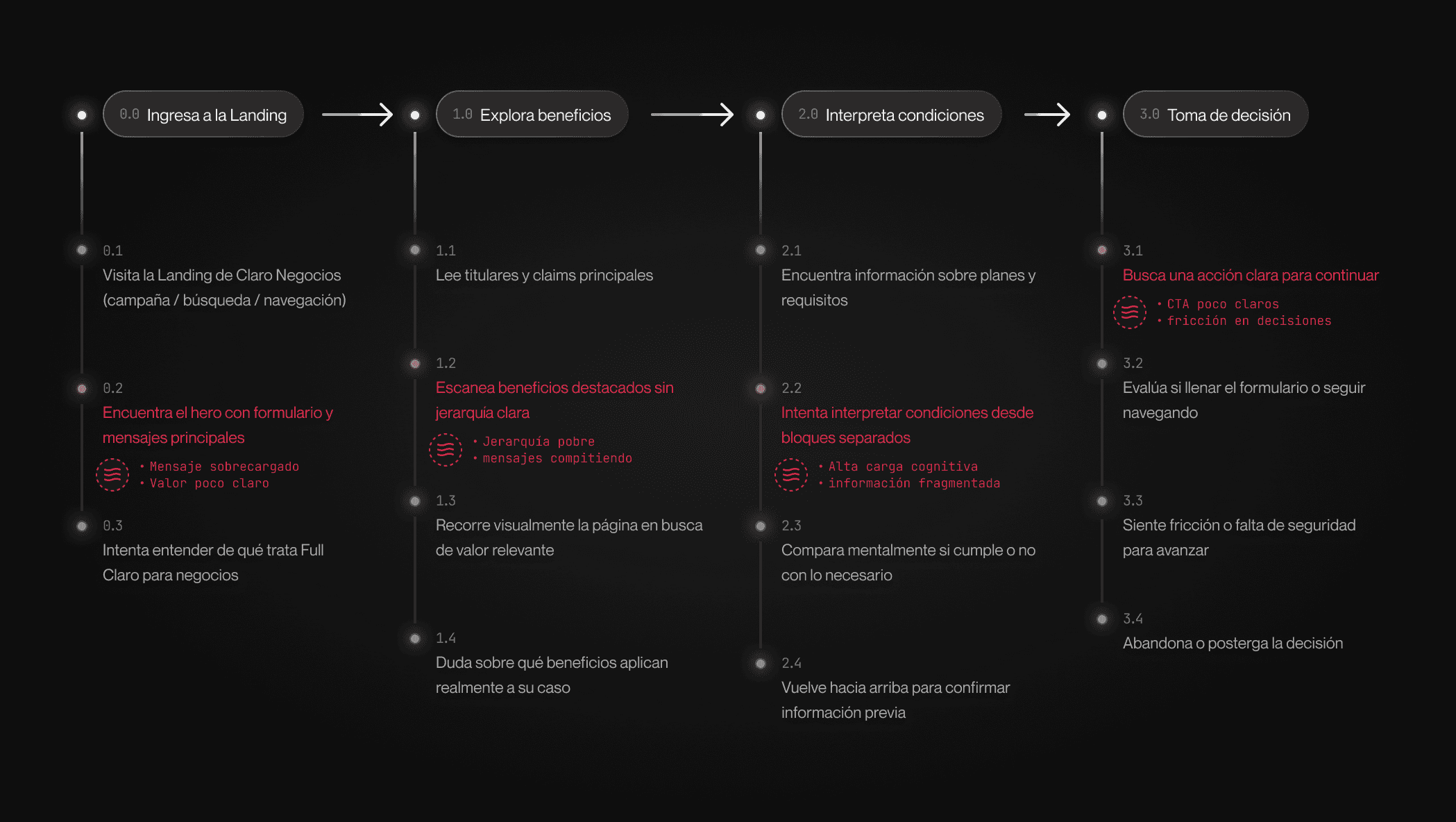 Se analizó el flujo actual de la landing para entender cómo los usuarios recorrían la experiencia y en qué puntos se generaban fricciones en la toma de decisión (Figura 2.2).