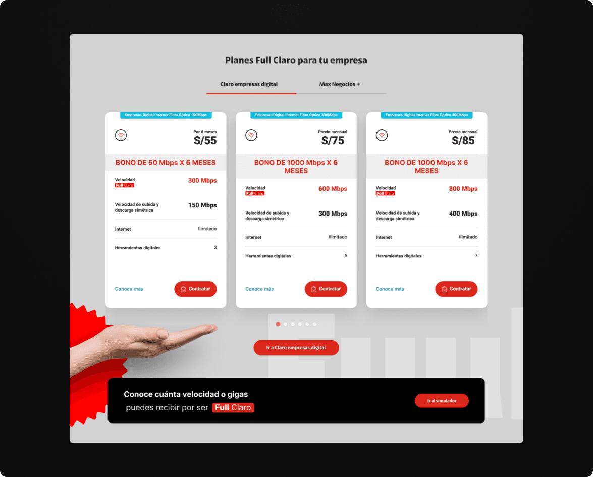 El resultado fue una plataforma más moderna, atractiva y funcional, que fortaleció la presencia digital de Claro Negocios y mejoró la manera en que las empresas interactúan con sus servicios.